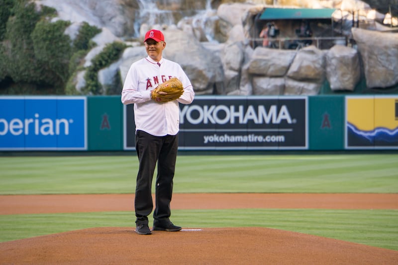 Elder Gary E. Stevenson of the Quorum of the Twelve Apostles threw out the ceremonial first pitch at the Los Angeles Angels baseball game on Friday, July 15.