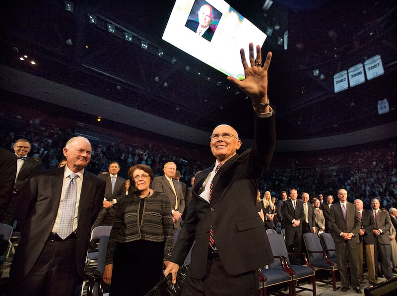 Forty-five years after giving his first devotional address, in 1971, Elder Oaks spoke to more than 15,000 people in the Marriott Center, focusing his remarks on elections, hope and freedom.