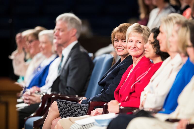 She recounted an experience she had one year at Women’s Conference when she sat alone at a table in the Wilkinson Student Center, wishing she had a friend with her. Sister Marriott said she felt warmed by the presence of a sister who sat beside her and offered Sister Marriott some of her mint brownie.