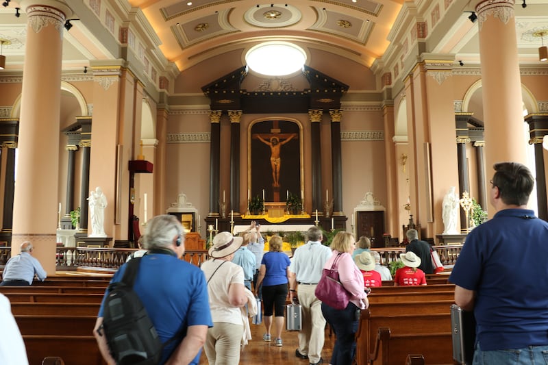Tour attendees visited the cathedral, which was dedicated in 1834 and, with the Old Courthouse, is one of only two remaining structures in the city that predate the St. Louis fire of 1849.