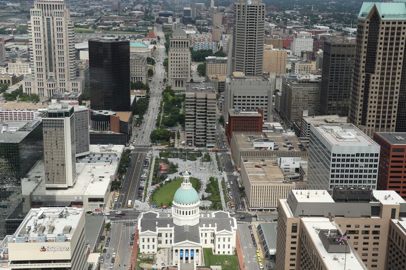 Conference attendees were among visitors who rode trams to the top of the arch’s interior. There, they gazed out of windows affording views of the Mississippi River on the east and the cityscape on the west, including the Old Courthouse. That is the location where the famous Dred Scott decision of the 1800s was first argued. The eventual U.S. Supreme Court decision infamously held that a slave, even one that had been freed, could not be a U.S. citizen and therefore could not sue in federal courts. The consequence was to heighten tensions that eventually brought on the Civil War.