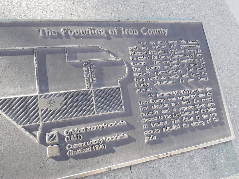 A plaque in Parowan’s Heritage Park quotes President Young as saying: “Iron we must have. We cannot well do without it.”