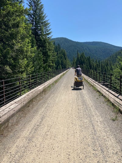 I stood by my 9-year-old son, high in the mountains of northern Idaho, staring at the old railway trestle — or bridge — that stretched out in front of us, cutting across the space into the tall trees on the other side.