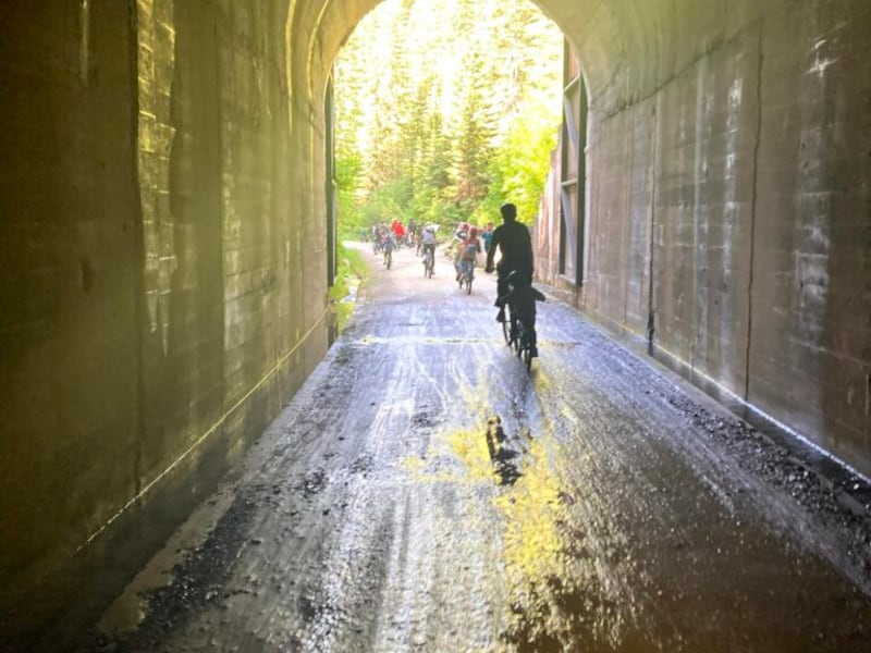 “We are staying on the path. We are right here on the trail in the middle,” I said. “We are safe. We are pedaling across safely. It is almost over. We made it!” Then in the tunnels, I kept up the same stream of encouragement: “It’s just dark for a little bit right now. Soon it will be over. We will get through it.”