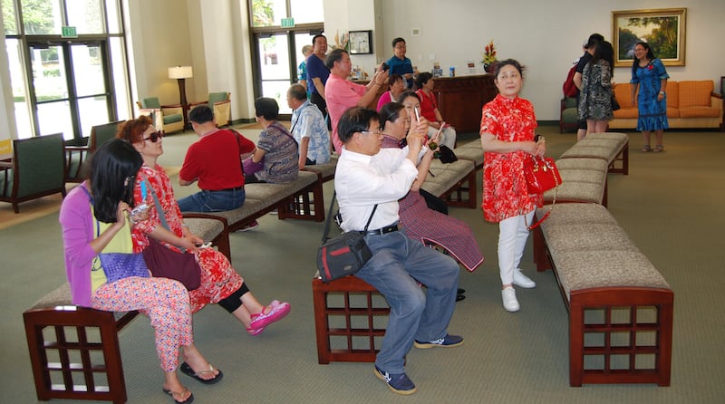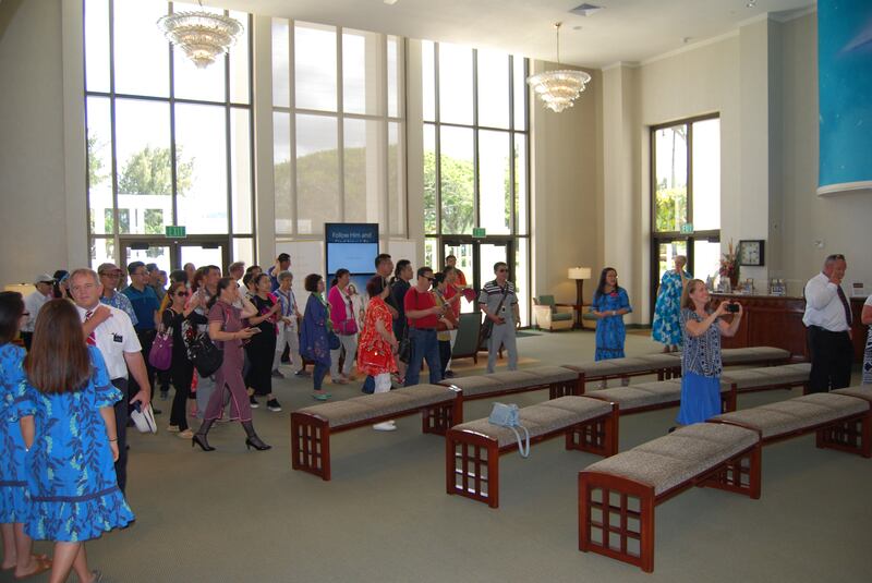 The Laie Temple Visitors’ Center has recently experienced an increase of more than 100 visitors a day, specifically in the early evening. A free 35-minute tram tour around the Polynesian Cultural Center and the campus of Brigham Young University-Hawaii, with a stop at the temple grounds was already being offered, but there weren’t enough seats to accommodate the demand and people were left behind, Elder Swinton said.
