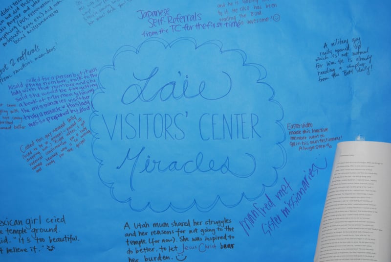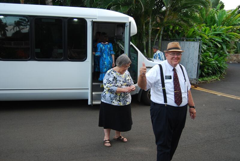 The Visitors’ Center arranged for a few extra buses to run between 6-7 p.m., which has been successful. The missionaries also received permission to pass out small cards at the PCC with an illustration featuring the temple grounds, BYU-Hawaii and the PCC, with information regarding the tram/bus rides and schedules, the Swintons said.