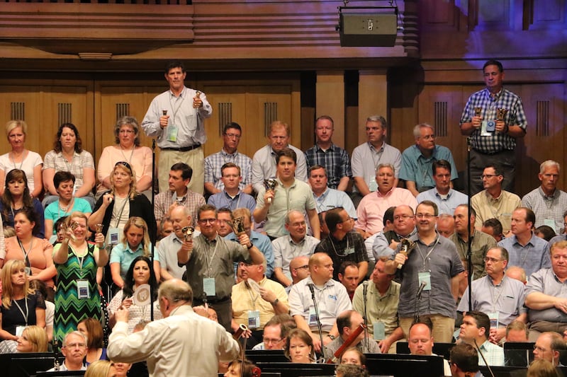 The day after the July 9 concert in Frankfurt, Elder Patrick Kearon, General Authority Seventy and Europe Area president, spoke of it in spiritual terms to performers and tour guests at a sacrament meeting in the hotel where they were staying.