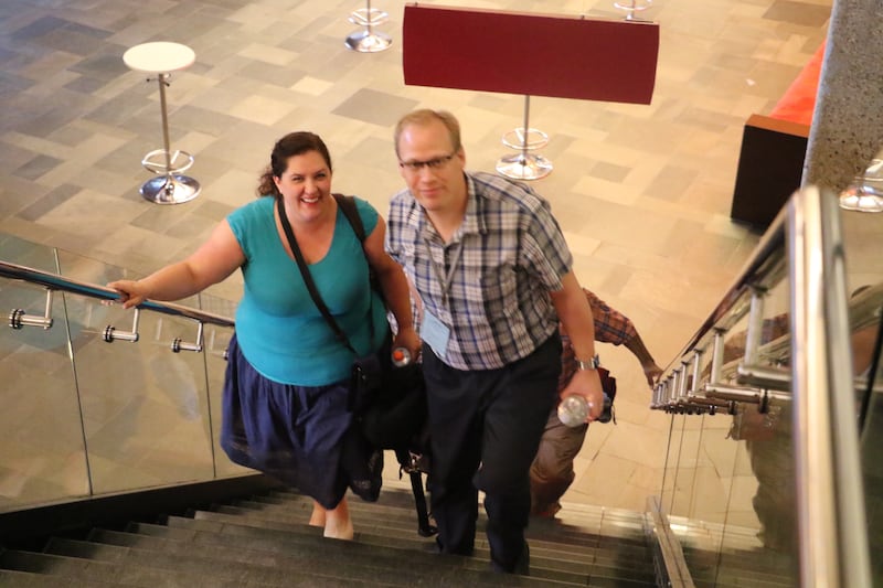 Niel and Denise Westover are newlyweds of about a year who met in the choir. He arranged to propose to her last year in front of the choir and orchestra on the day the European tour was announced, asking her, “Will you be my tour roommate?”