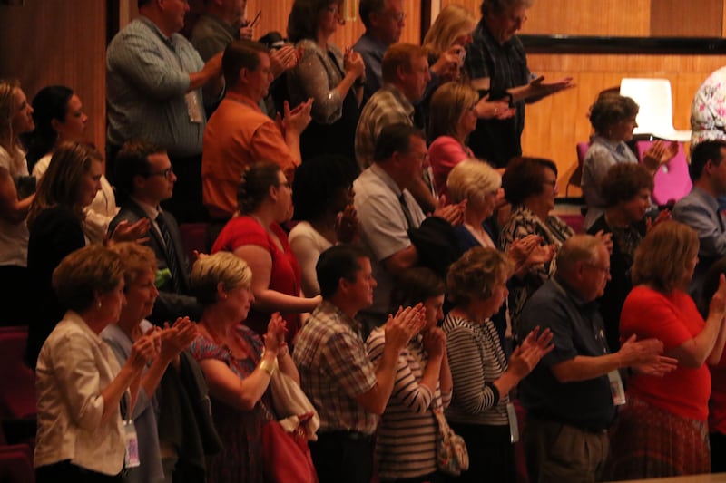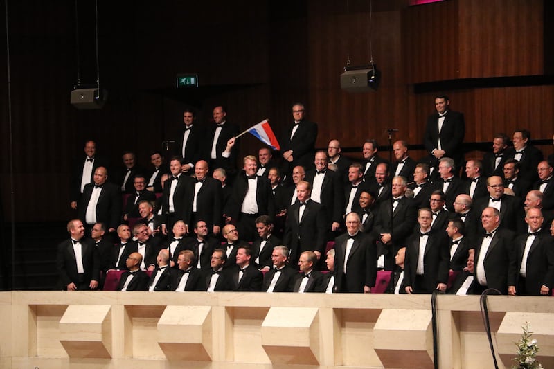 “We love you!” another yelled when Brother Newell said, “We want to see you again” and expressed the hope that it would not take another 34 years, as it did this time. All the performers — singers, instrumentalists, and directors — sang the choir’s traditional farewell hymn “God Be with You” in Dutch.