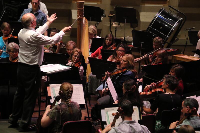 “So we played ‘telephone,’” Sister Feinauer said. The cellist “whispered to somebody who whispered to somebody else. And it goes through the violas, through the woodwinds, all the way up through eight rows of the choir to this missionary mom, and they’re waving at each other.”