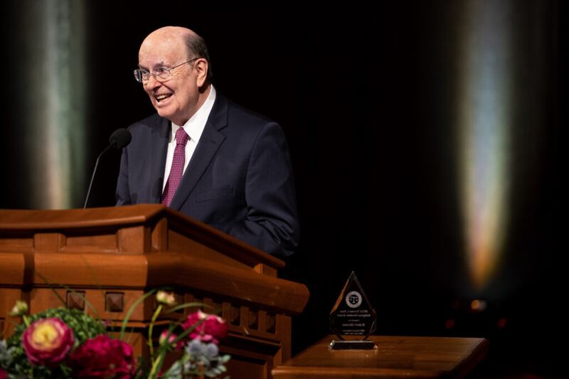 “Before Bob Abrams receives this award and delivers his message, I am pleased to share the background, character and integrity that culminated in his extraordinary assistance to The Church of Jesus Christ of Latter-day Saints,” Elder Cook said.