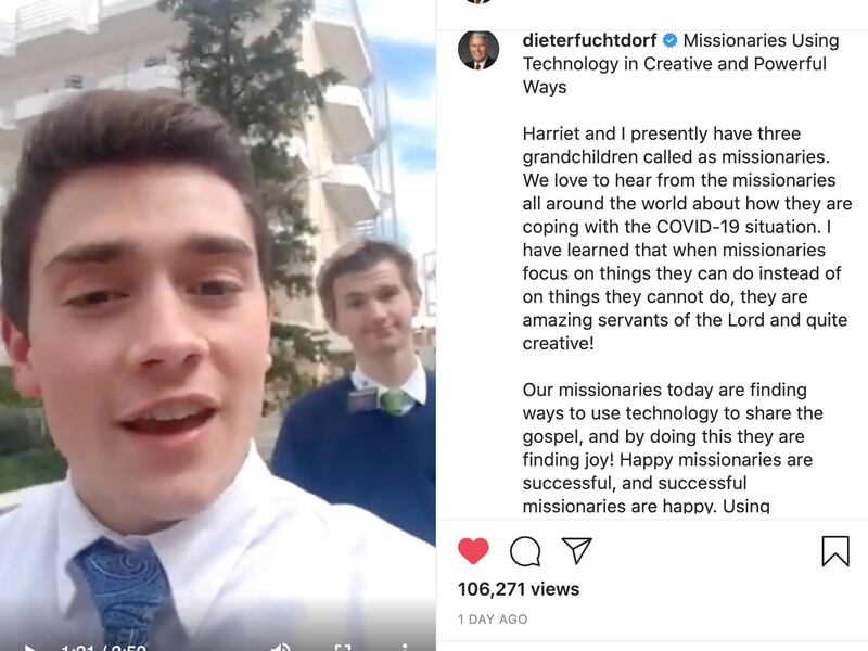Elder Dieter F. Uchtdorf of the Quorum of the Twelve Apostles shared the missionaries’ story on his Facebook and Instagram pages on Wednesday, May 27, adding: “I have learned that when missionaries focus on things they can do instead of on things they cannot do, they are amazing servants of the Lord and quite creative!”