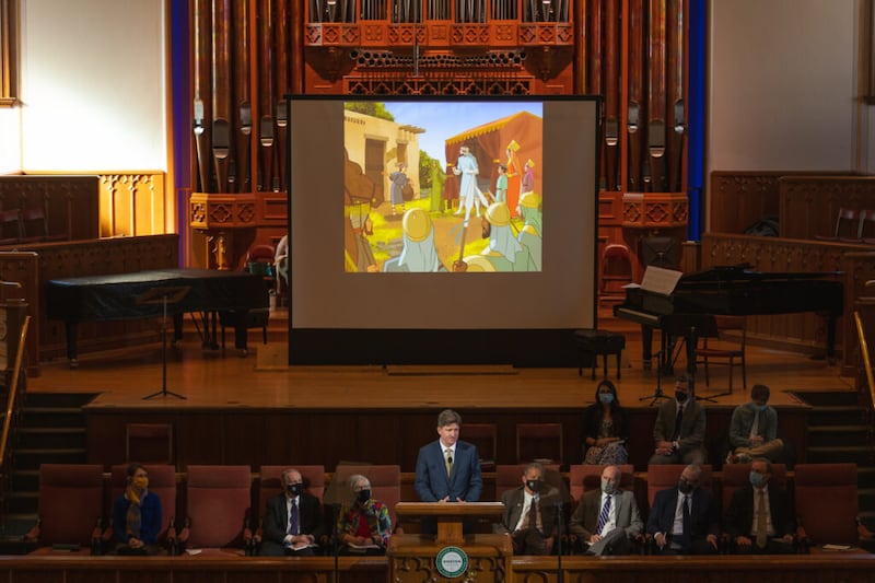 Many of these questions “invoke the existence and role of living prophets,” Erekson said in an Ensign College devotional held in the Assembly Hall on Tuesday, Feb. 1.