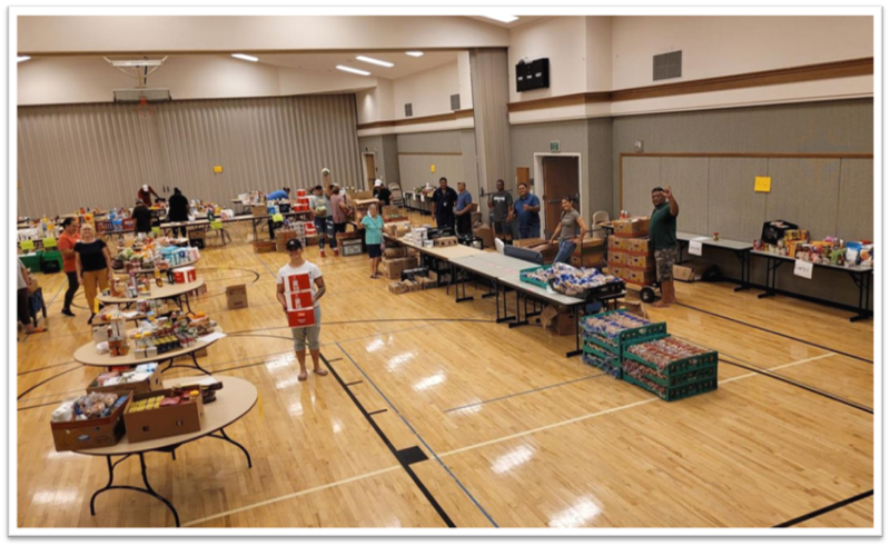 Meanwhile, Sister Mabellos and other volunteers prepare the stake center to receive the commodities.