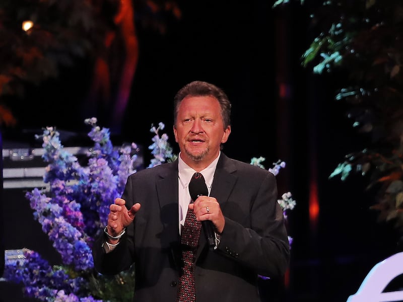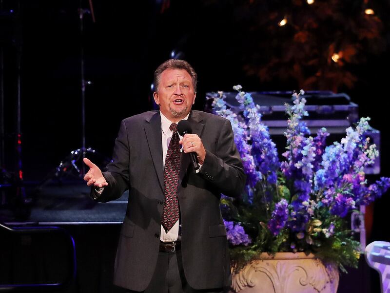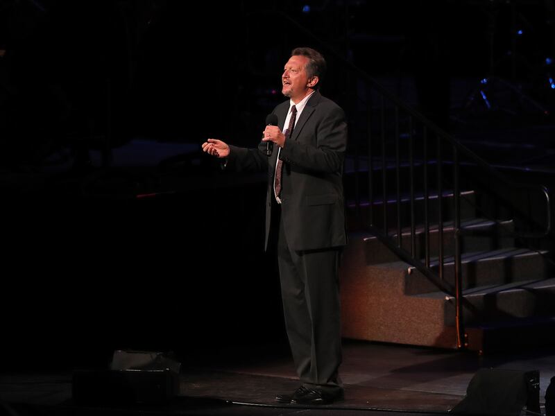 Narrator, Oscar "Andy" Hammerstein III, talks about the different musical selections as the Tabernacle Choir performs their annual Pioneer Concert at the Conference Center in Salt Lake City with guest performers Matthew Morrison, Laura Michelle Kelly and on Friday, July 20, 2018. Credit: Scott G Winterton, Deseret News, Deseret News