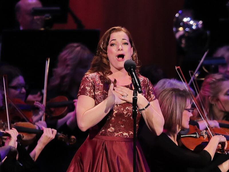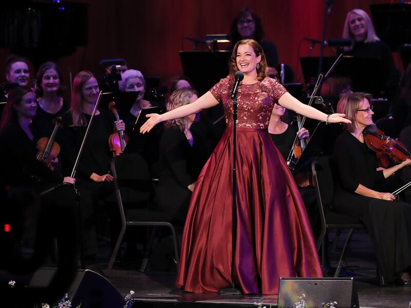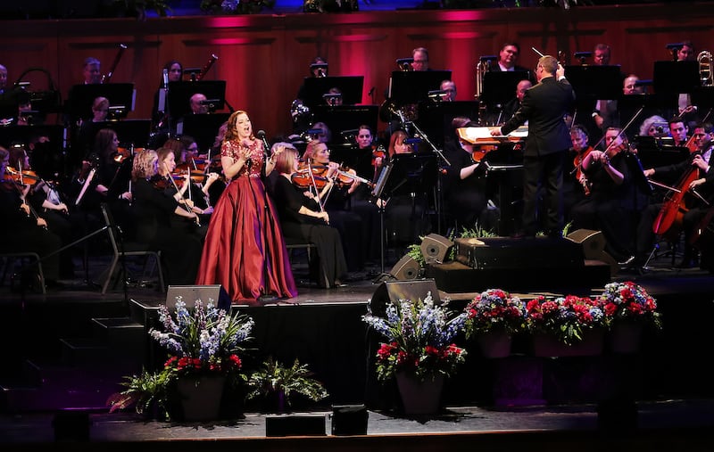 Laura Michelle Kelly sings as he joins the Tabernacle Choir in their annual Pioneer Concert at the Conference Center in Salt Lake City with other guest performers Matthew Morrison and Narrator, Oscar "Andy" Hammerstein III on Friday, July 20, 2018. Credit: Scott G Winterton, Deseret News, Deseret News