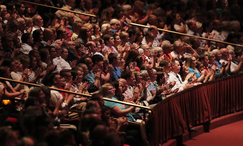 Audience members applaud during the Tabernacle Choir's annual Pioneer Concert at the Conference Center in Salt Lake City with guest performers Matthew Morrison, Laura Michelle Kelly and Narrator, Oscar "Andy" Hammerstein III on Friday, July 20, 2018. Credit: Scott G Winterton, Deseret News, Deseret News