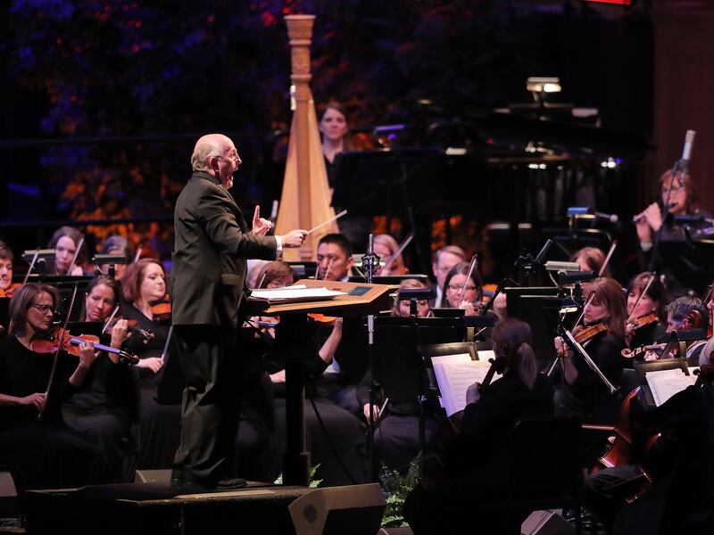 Mack Wilberg conducts the orchestra and the Tabernacle Choir in their annual Pioneer Concert at the Conference Center in Salt Lake City with guest performers Matthew Morrison, Laura Michelle Kelly and Narrator, Oscar "Andy" Hammerstein III on Friday, July 20, 2018. Credit: Scott G Winterton, Deseret News, Deseret News