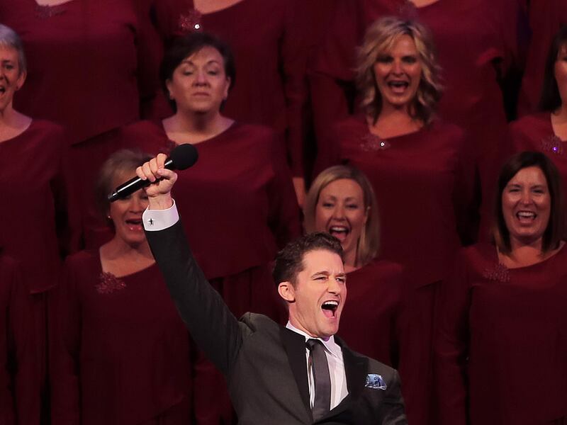 Matthew Morrison sings as he joins the Tabernacle Choir in their annual Pioneer Concert at the Conference Center in Salt Lake City with other guest performers Laura Michelle Kelly and Narrator, Oscar "Andy" Hammerstein III on Friday, July 20, 2018. Credit: Scott G Winterton, Deseret News, Deseret News